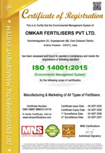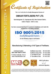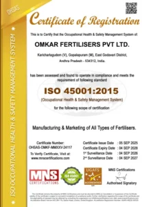 Omkar Fertilisers Private Limited is one of the leading manufacturers of Organic, Inorganic and Chemical Fertilizers in Andhra Pradesh State and also a leading marketer for all kinds of fertilizers in Andhra Pradesh, Telangana, Odisha, Chhattisgarh, Karnataka and Tamil Nadu agriculturally growing States in India. Omkar Fertilisers Private Limited in business under the Companies Act, 1956 since 2010. For the past years, Omkar Fertilisers Private Limited Organization has been giving their services through their best quality fertilizer products to the crop growing farmers in the fertilizer sector and creating value for its customers through a wide range of all kinds of fertilizers. Production capacity of 800 MT per day Granulated Fertilizers, Fortified Powder Form Fertilizers, Magnesium Sulphate and Multi Micronutrient Formulations. In addition to the above products